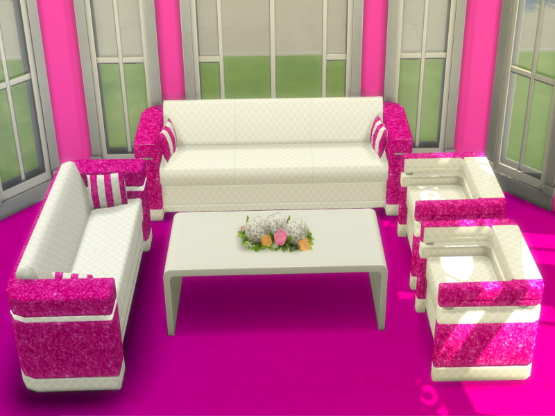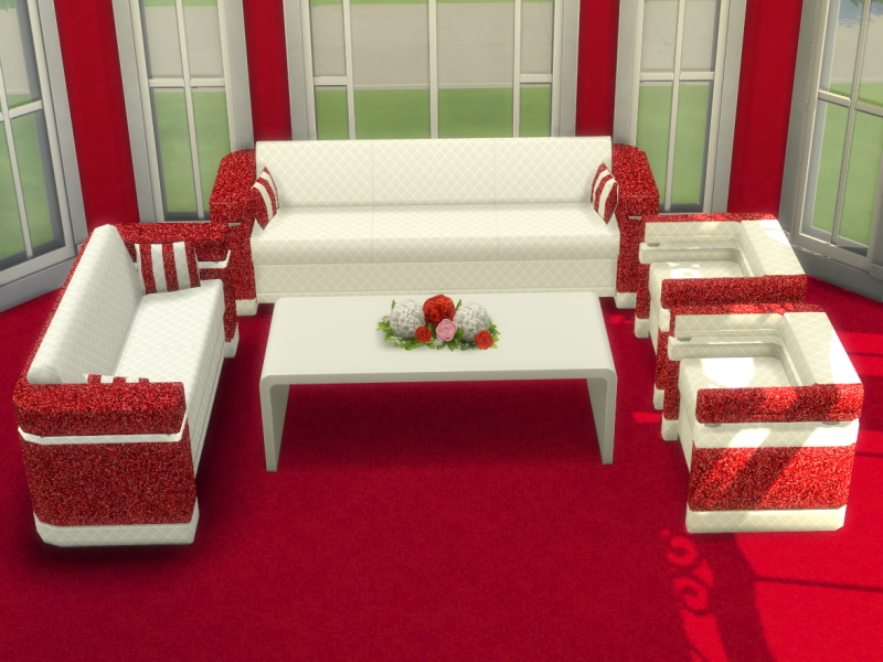 Four new colours for The Glittery Living Room Set: red, silver, magenta and azure - all with the white quilted cushions that are in the first version. More colours, more choice.
