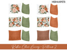 Set includes variations of brown, orange, green and white solid colors along with the pattern for a more minimalist look.