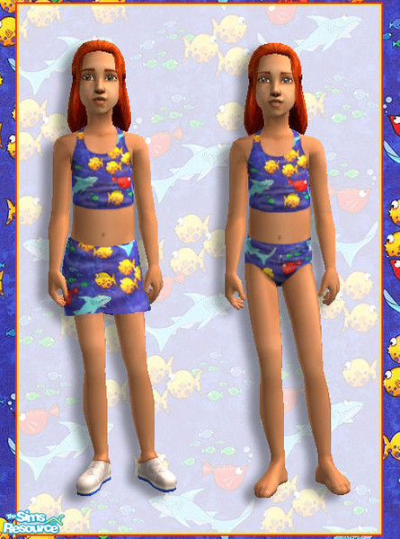Reds Child Fishy Set Including a Bathing suit, Skirt and Shirt.