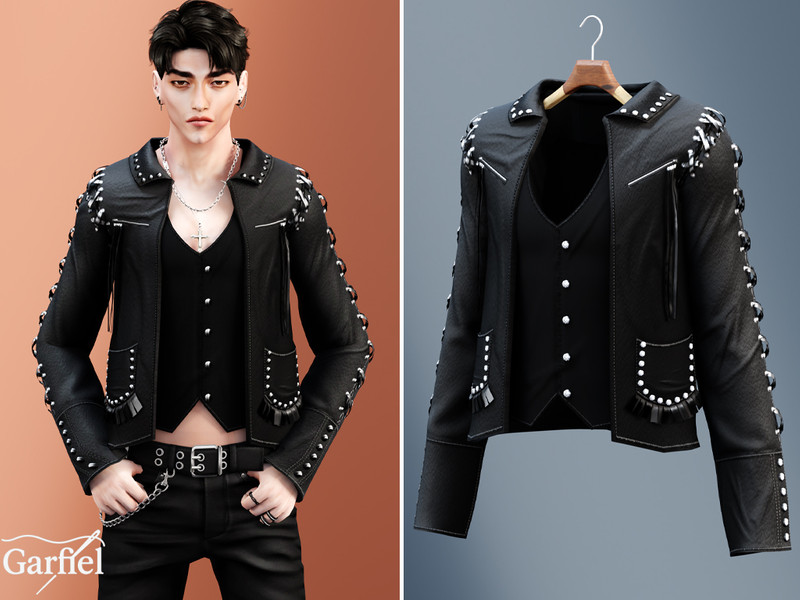 Sims 4 — Adult - Studded leather jacket with layered vest by Garfiel — A sleek leather jacket blending metal-inspired