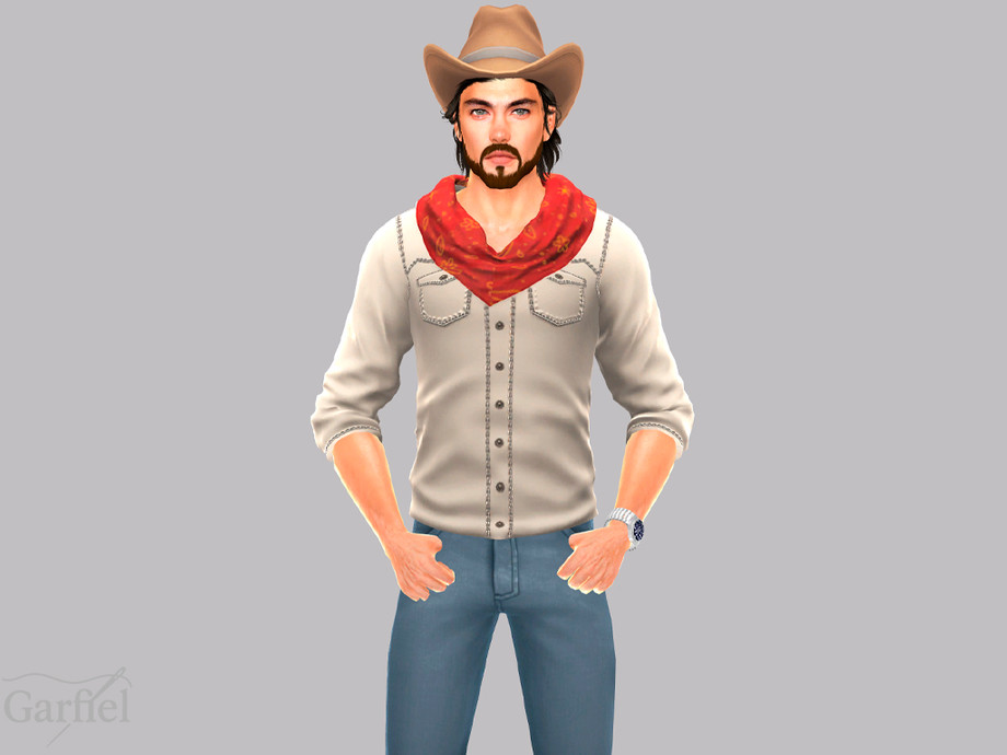 Sims 4 — Adult - Western shirt with bandana detail by Garfiel — This adult outfit captures the essence of rugged western
