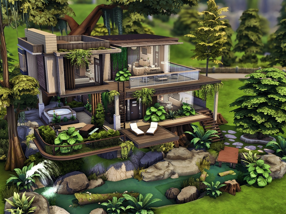 Sims 4 — Glasswood cabin by RayDesign9 — I build this house in Windenburg, 40x30 lot size with 2 floors. This house has :